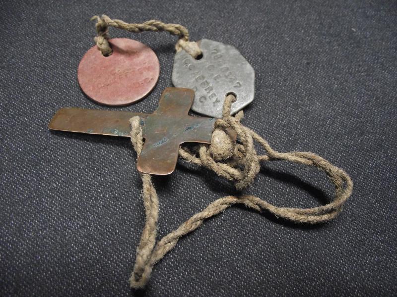 Not sure who McCaffrey was but perhaps he took some solace from having this hand made brass crucifix around his neck. A nice emotive piece of personal personal kit.