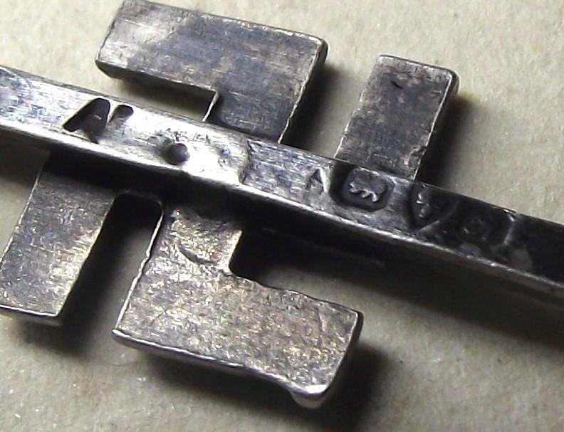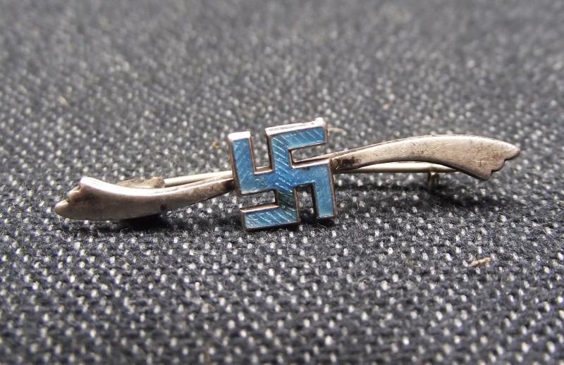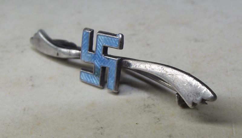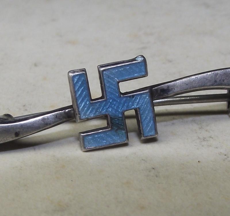 Nice condition with one blemish to the light blue field to the swastika. The rear has its fixing pin and what appears to be British silver hallmarks.