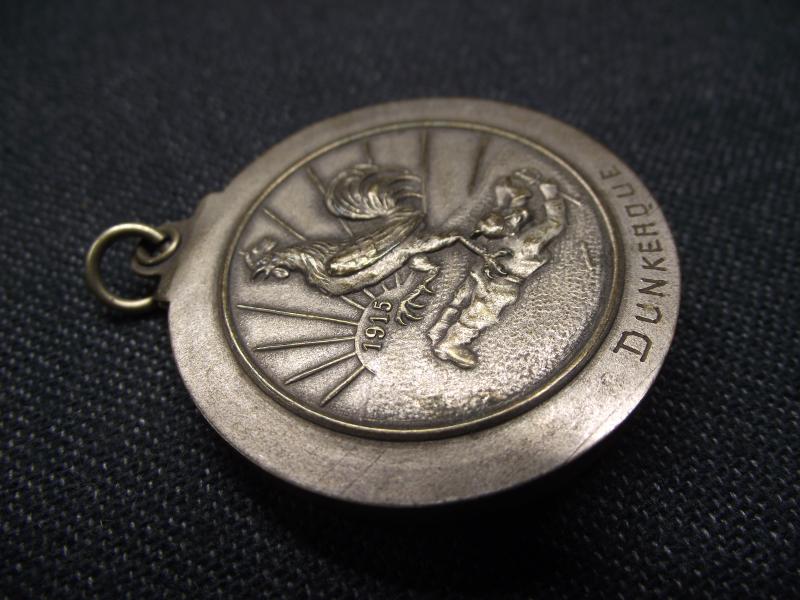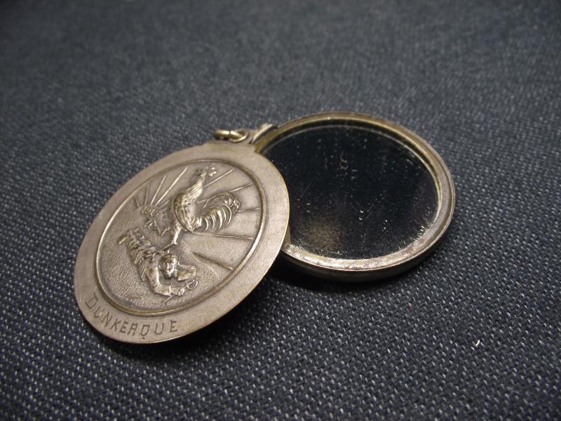 French 1915 Dated Dunkerque Ladies Souvenir Neck Pendant Mirror.
