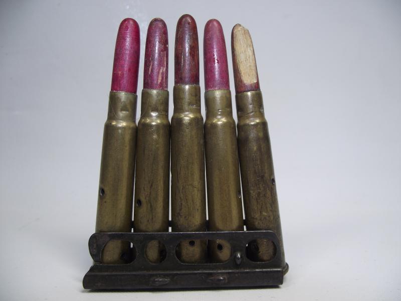 WW1 British Wooden Head Practise Rounds in MK2 Stripper Clip.