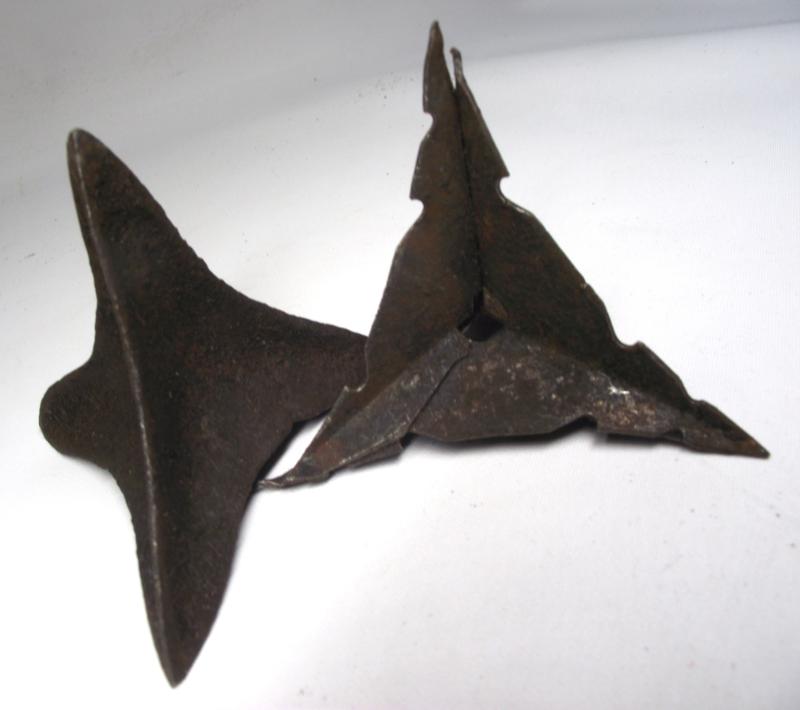Two allied Caltrops, one being the multi piece ''Christmas tree'' type the other produced from cast steel. Both are in nice condition.