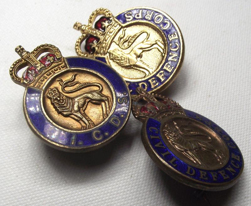 3 X British Civil Defence Enamel Badges.