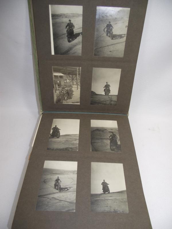 A very nice hardback photo album that once belonged to a member of the i believe is the RASC. There are 96 various photos in the album and 6 loose. The photos are quite detailed, nice uniform and vehicle details and a couple with blown up truck and locomotive with only a few photos of the native population and buildings. Im presuming this album dates from 45 till 48.