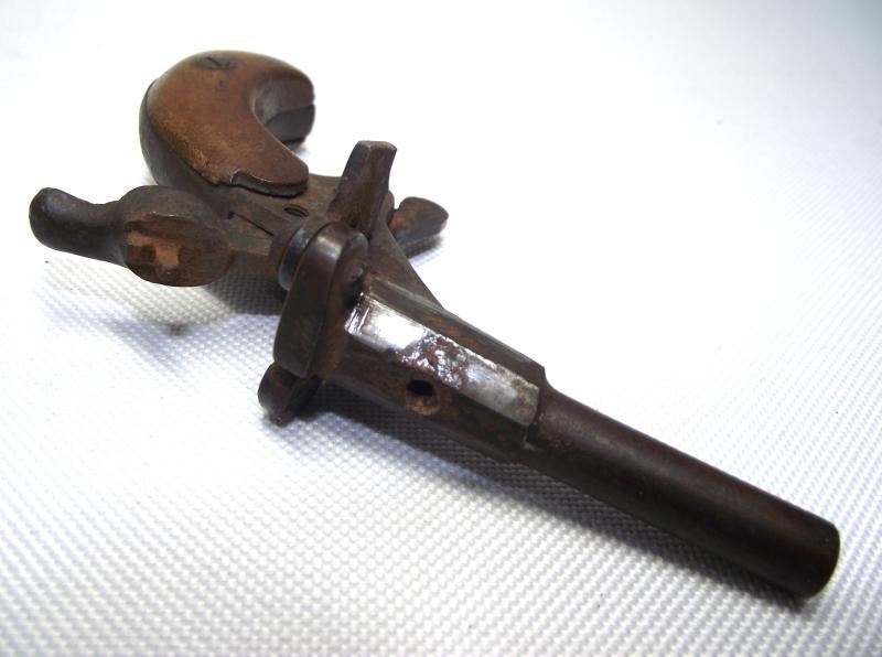 Produced around the 1900's is this small blank fire pistol sold during the time too bicyclist for personal protection against roaming dog attack. Condition is very good and complete. The only issue i can find is the screw holding the trigger in place being proud of the body than its should be , trigger functions fine with a tight spring, this screw would need some slight oil and a thin screwdriver to fix, both of which i do not have!