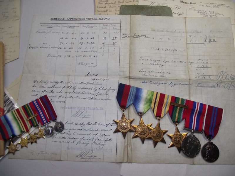 WW2 Medals and Paperwork Grouping. Merchant Navy, Torpedoed Once. Cardiff Interest..