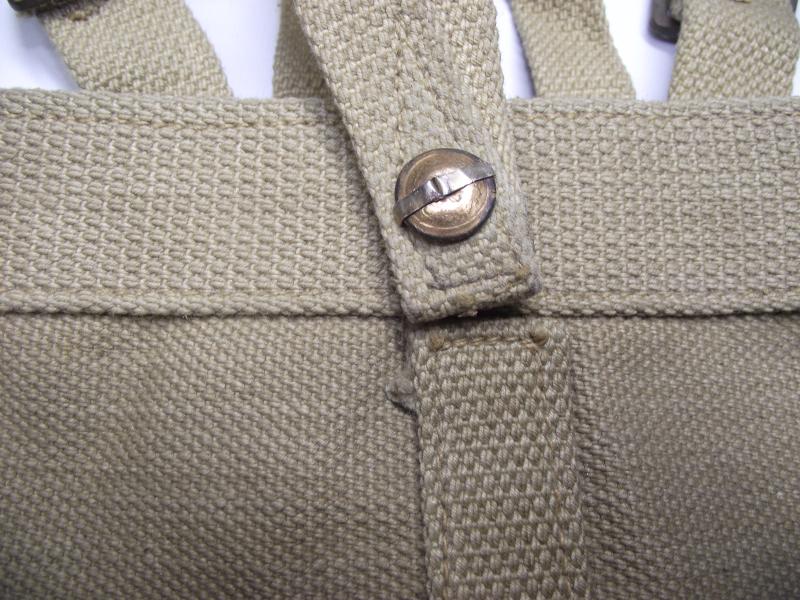 In very nice close to unissued condition except for the repair to the front closure brass snap button. Clear maker and date stamp to the inside.