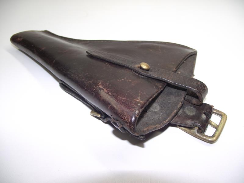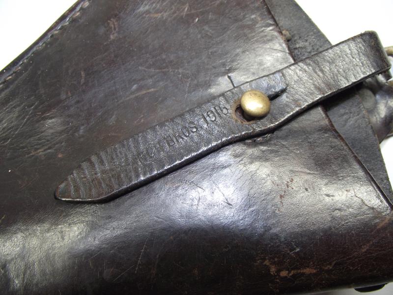 In nice supple condition with tight stitching and a clear makers and 1916 date stamp to the front closer strap . The back has its ''V'' attachment with buckle and both belt loops. I may add that one belt loop strap has more wear and is perfect in place under the back fixing loop. This example has had the cleaning rod sleeve removed.