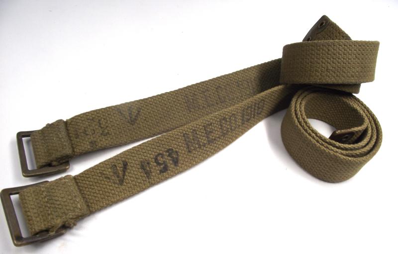 Both straps measure around 30 inches in length, dated 1919 and made by MECo. Both brass end tabs are stamped with a broad arrow and the letter ''N''. Condition i would rate at very good!