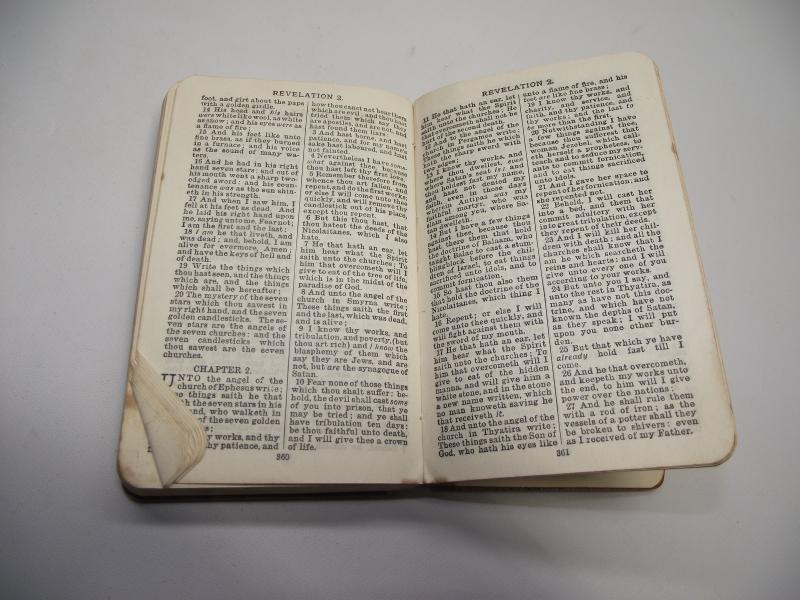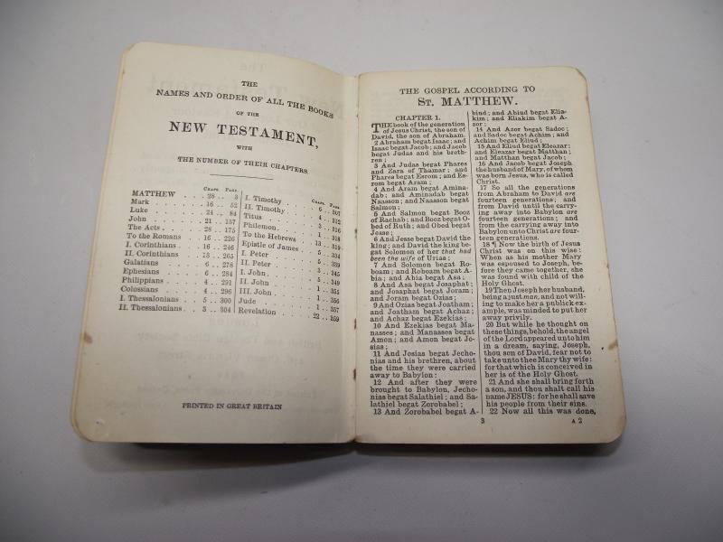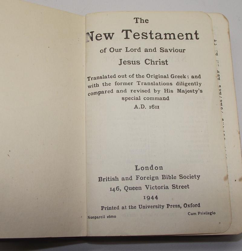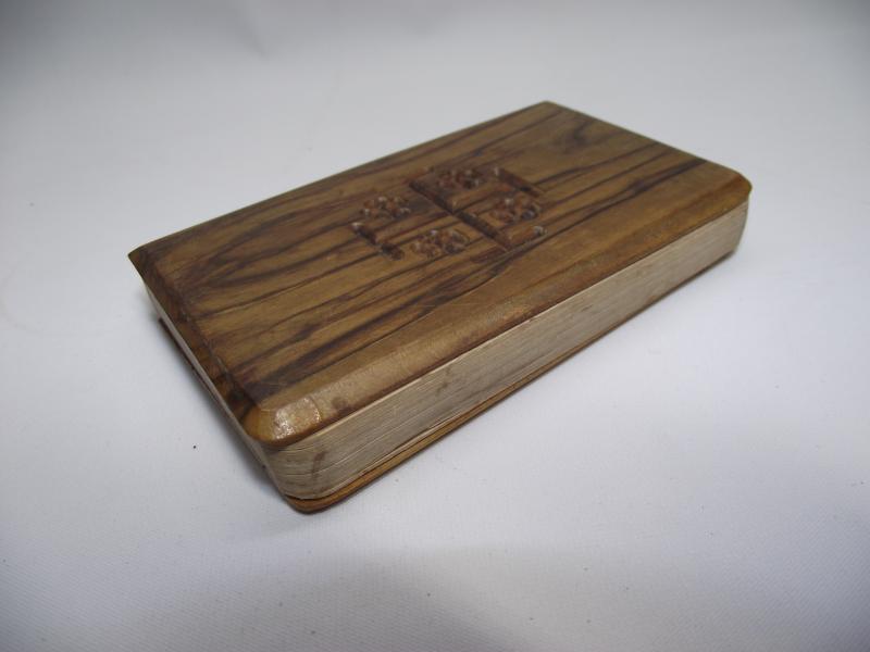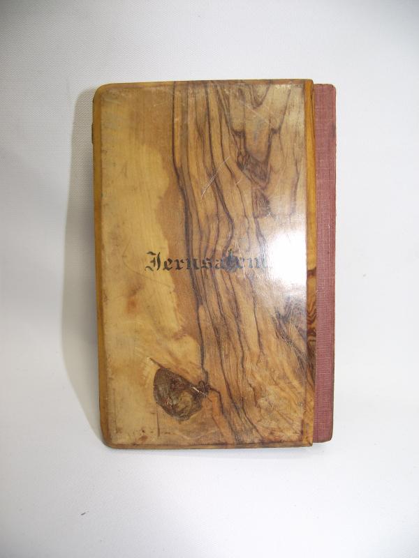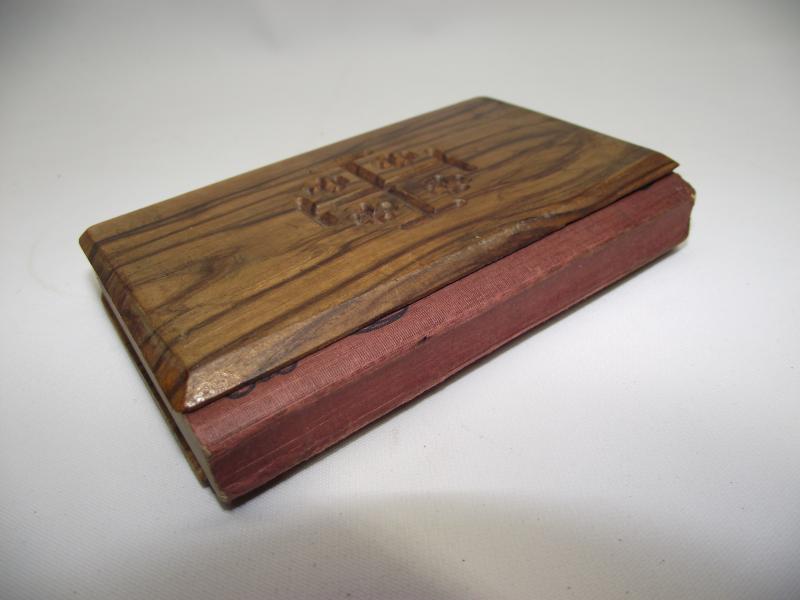 In very nice used condition with a clear 1944 date to the inside sheet. Both front and back have been covered in Olive wood. Its not the first time i have had one of these examples and i believe that a large batch of wartime books where sent over to Jerusalem and then covered, front and back, in the olive hard wood.
