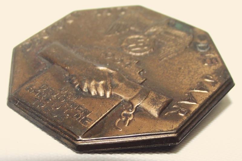 In nice condition with a good amount of its factory wash remaining. I find it interesting that the Tag Der Arbeit and May Day badges where also designed by the same artist.