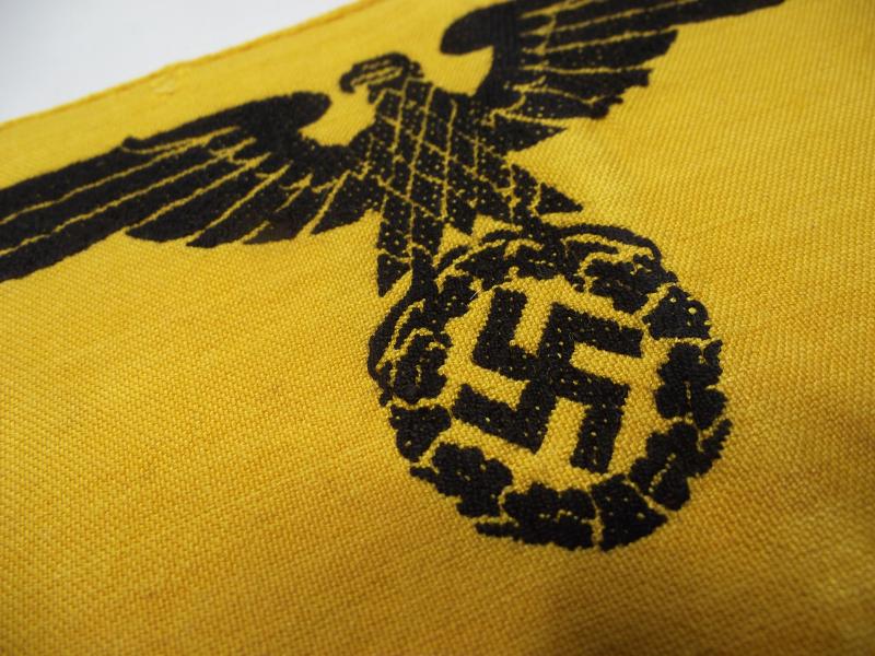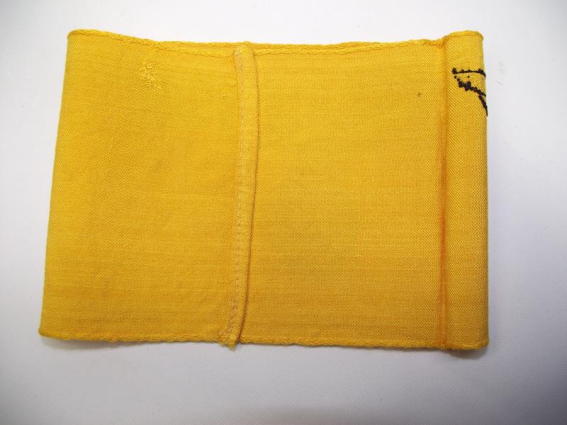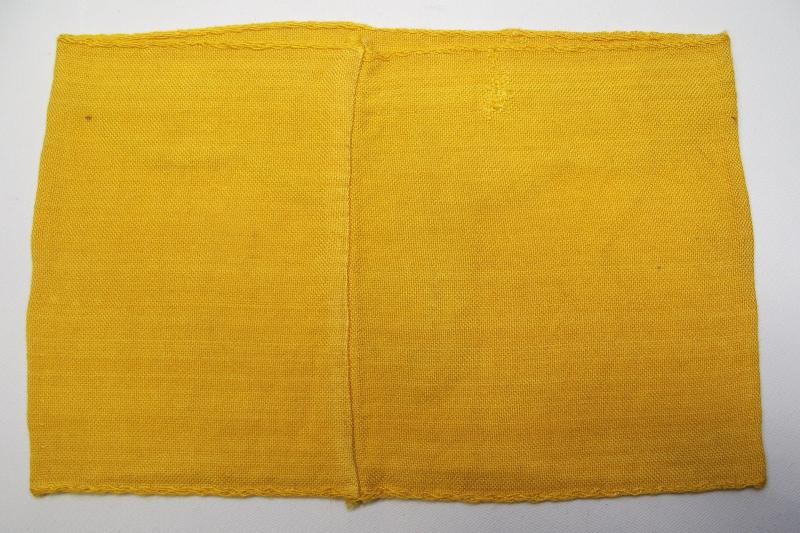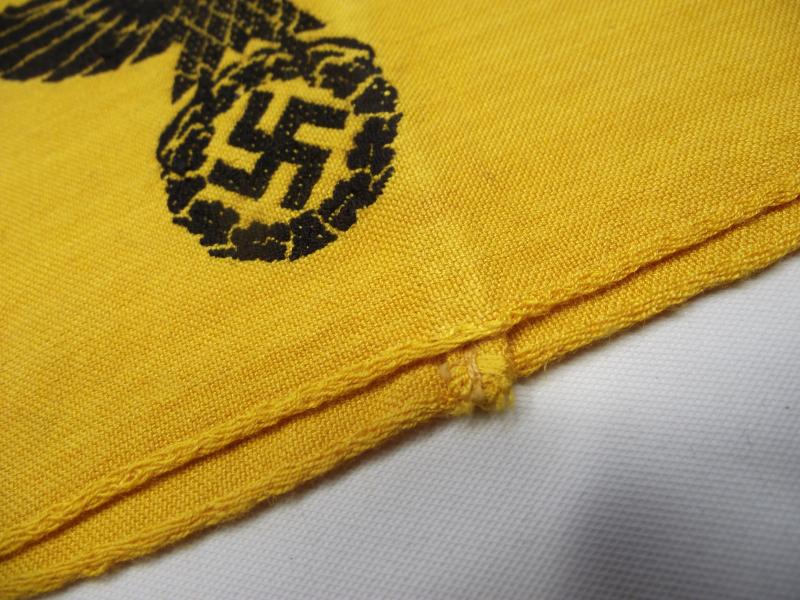 In very nice condition with a bevo style eagle machine woven onto a yellow cotton field with reinforced edges.