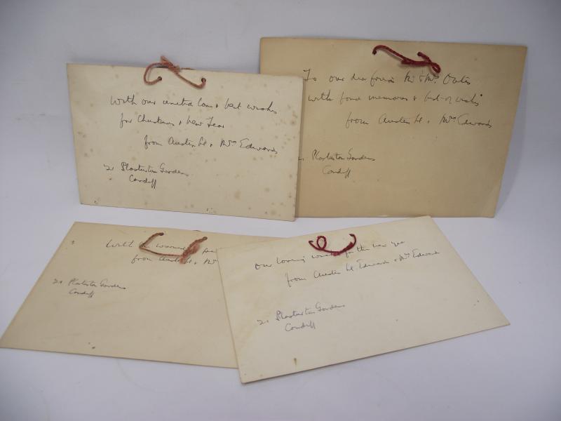 Four interesting cards with printed Gospel quotes from the Bible with different dates. To the back are some hand written sentiments. All four quotes do seem to relate to how civilians going through the war might well feel and make an interesting items for your Homefront collection. Cards measure approximately 7x5 inches.