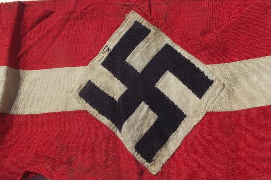 In nice used condition, some slight staining and one small tear above the swastika panel.