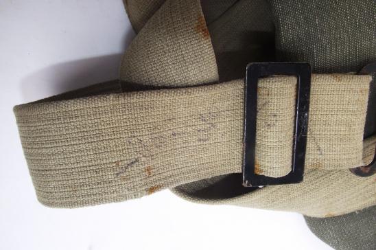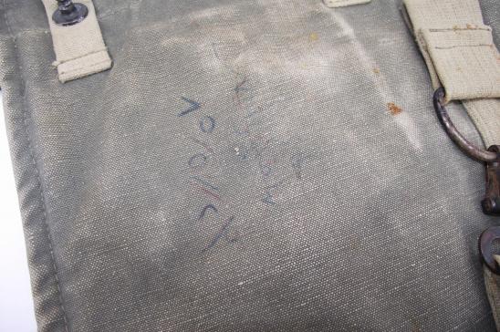 Desert Storm era gas mask bag, named to the outside and the strap.a letter ''V'' also added to the flap. Bag was made in Yugoslavia. Condition is good/used.