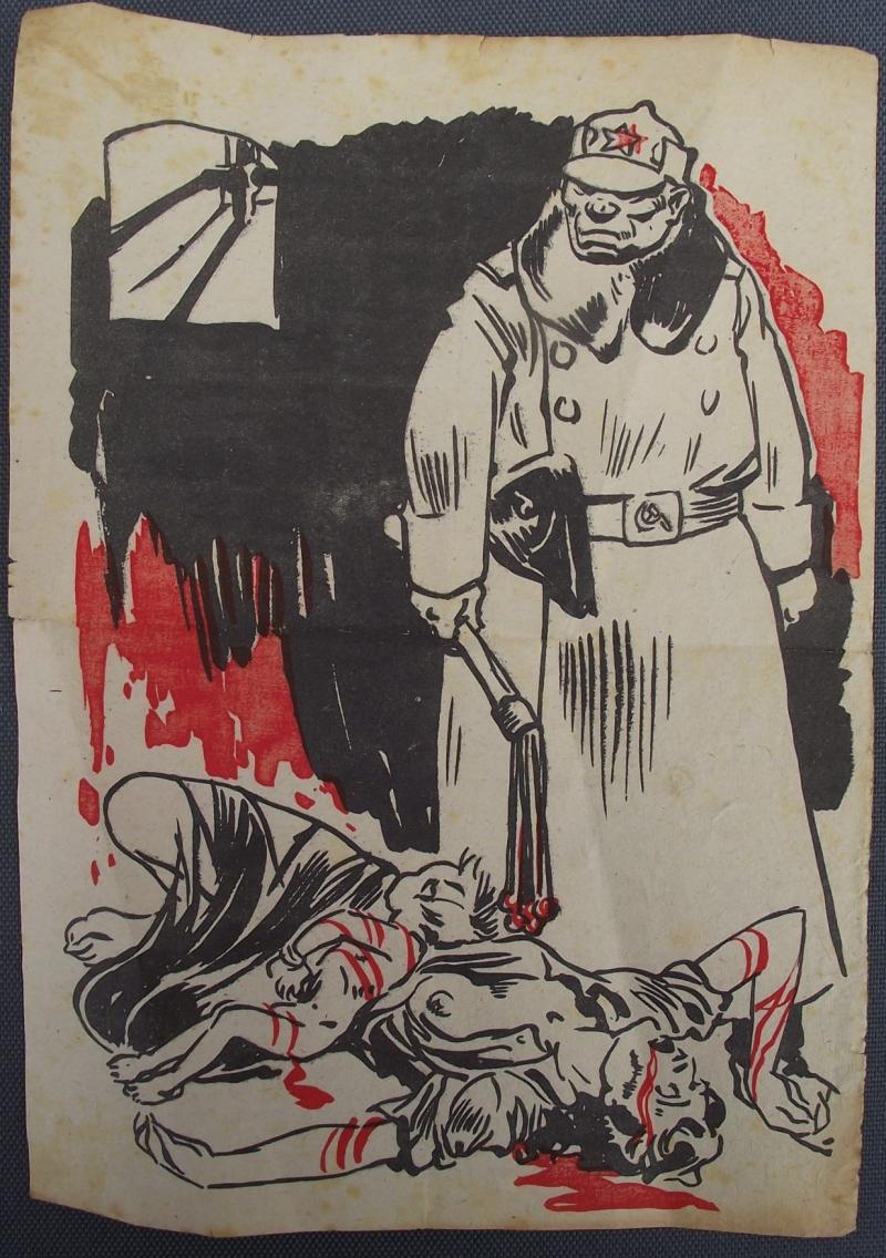 Dropped on Polish forces during there tough fight up the boot of Italy. Super bit of propaganda imagery with a Russian monster soldier torturing a Polish wife and child in prison , condition is very good.