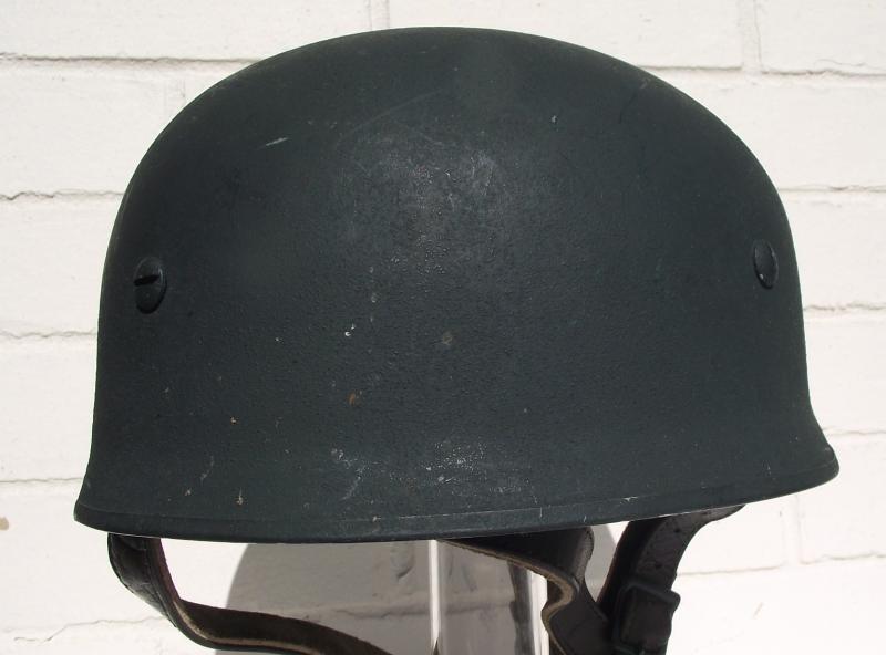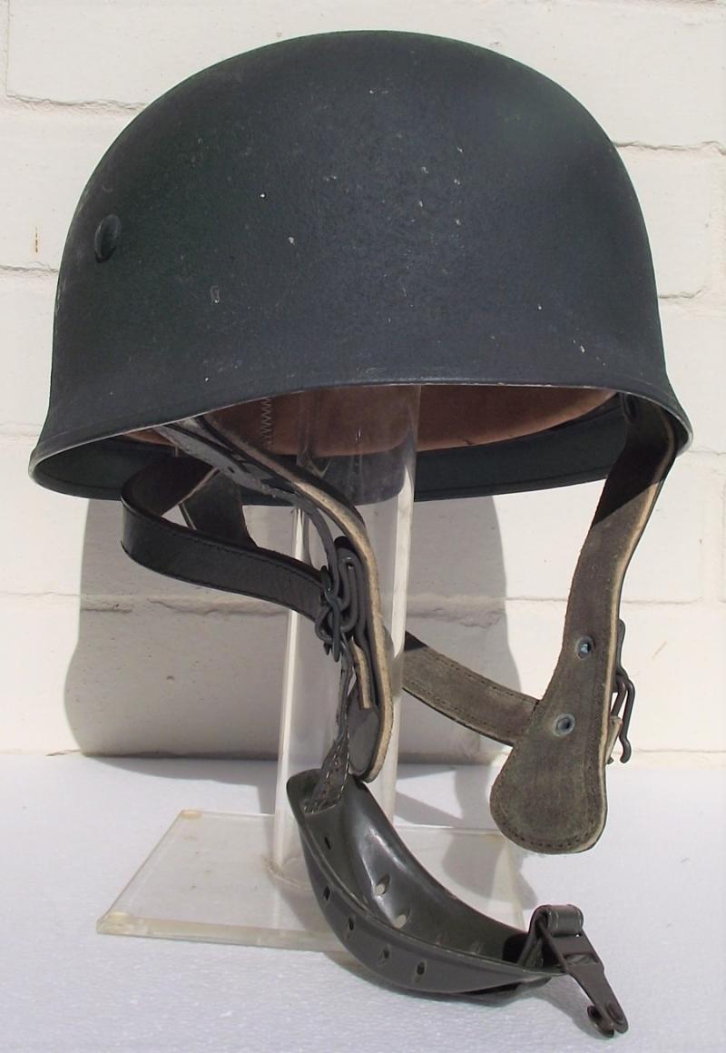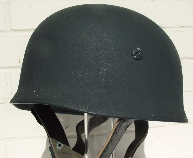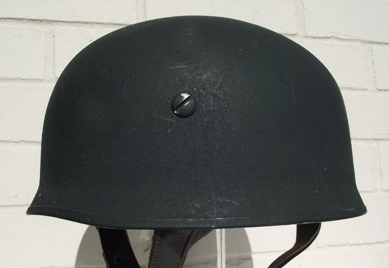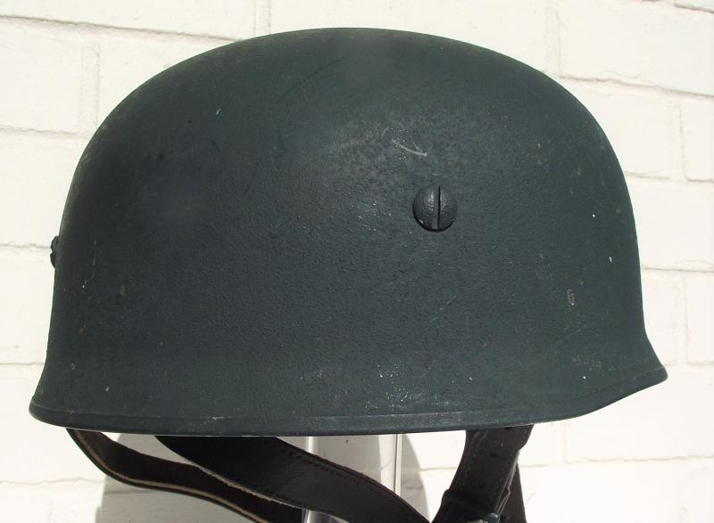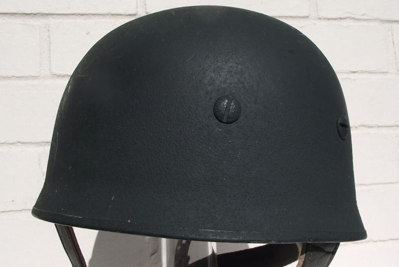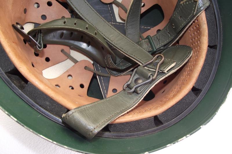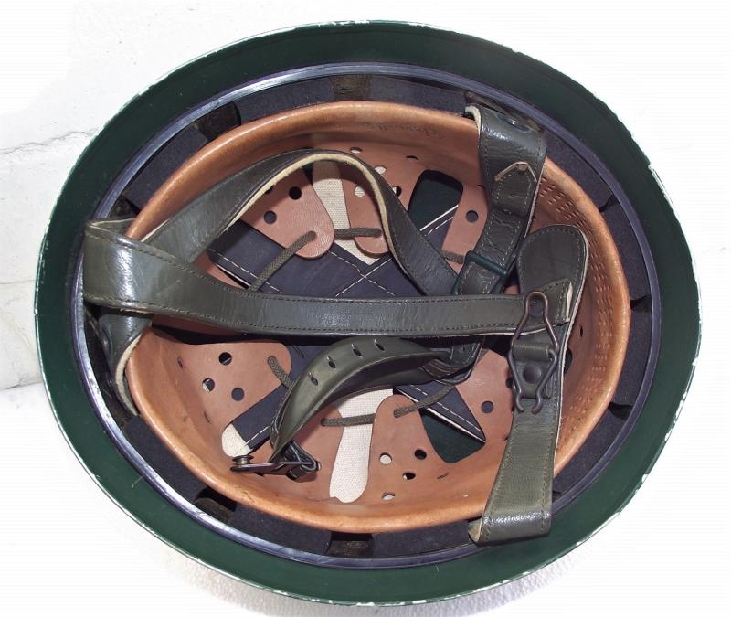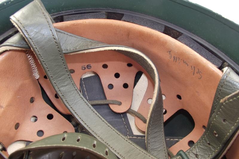 Super condition example with close to 100% of its period rough factory finish to the shell and liner pins. The inside has its complete liner and chinstrap system with very little use, its size stamped 56 and has the owners named penned to the liner. Outstanding example.