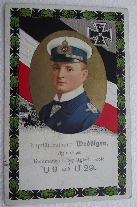U9 sunk the three British battleships Aboukir, Houge and Cressy in less than half an hour in 1914. Card is in nice condition and dated 1915.