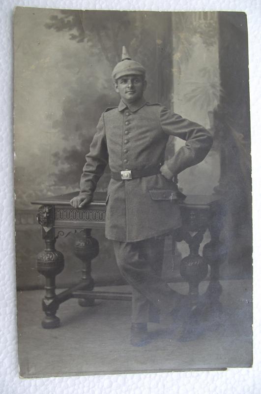 WW1 Imperial Photo Card, Picklehaube and Cover. Officer.