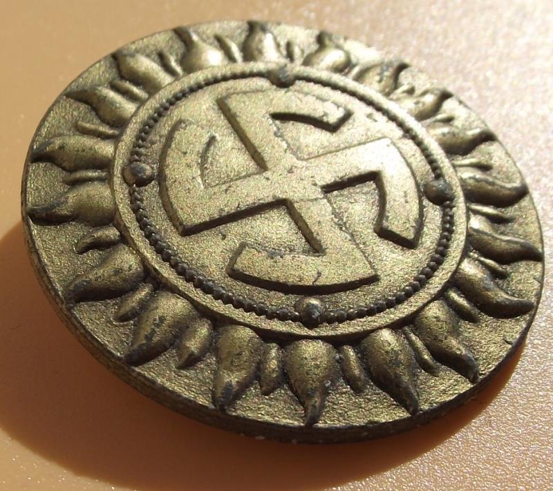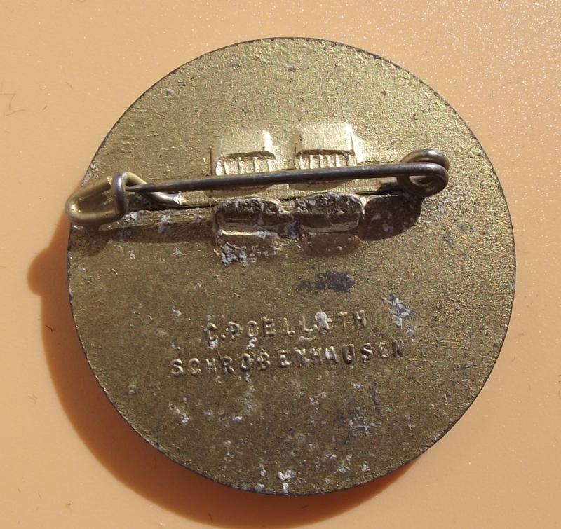 Zinc manufactured event badge with close to 100% of its period finish, rear has its period fixing pin and makers details.