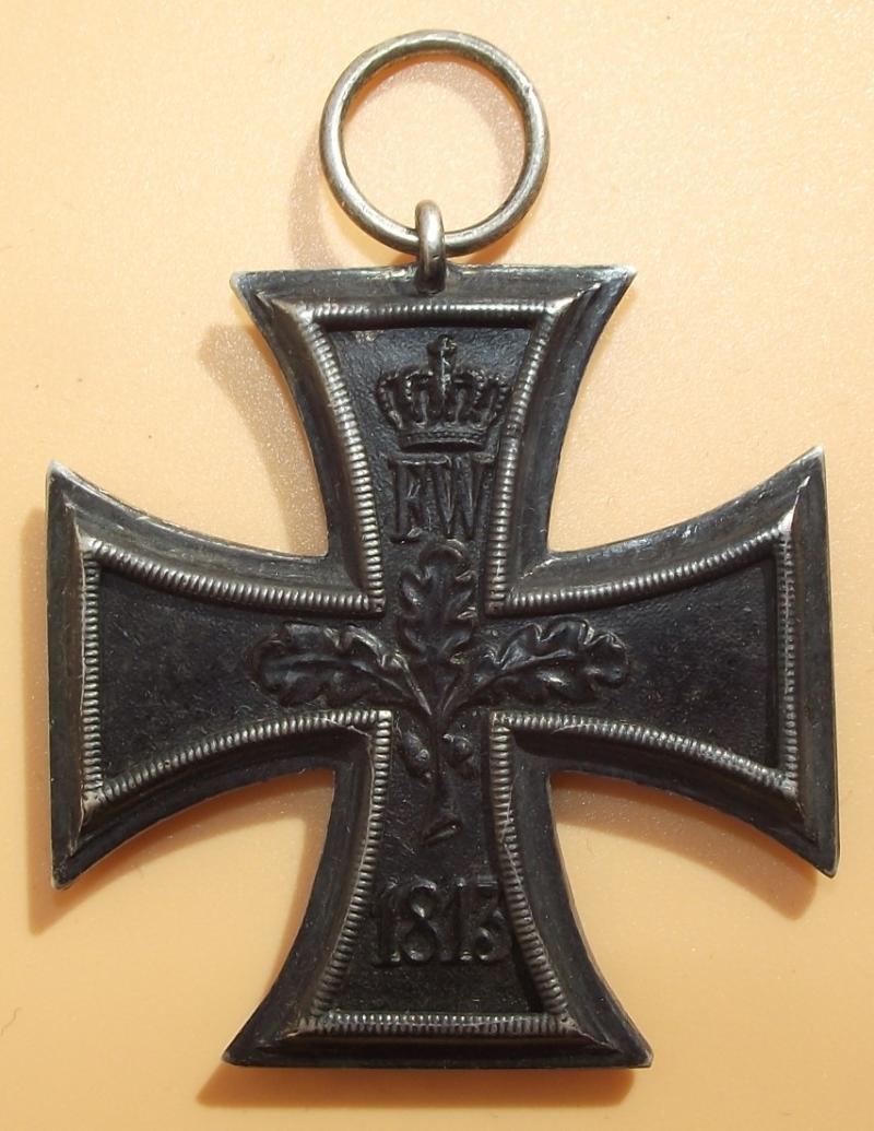 Nice condition cross with close to 100% factory finish to the iron center. Two piece frame is tight with a nice amount of patina and a lot of ''die'' flaws. No ring stamp and no ribbon.