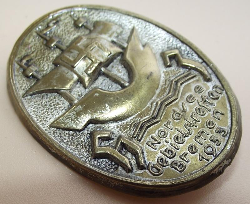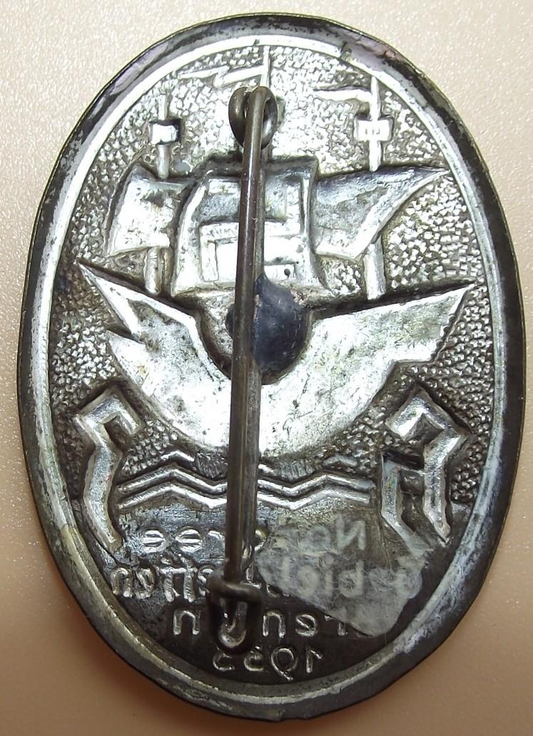 In very nice condition with some silver finish remaining. Rear has its period fixing pin. There are two color variations on these event badges, gold and silver.