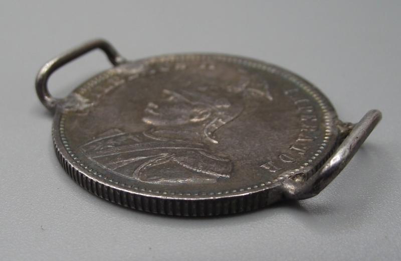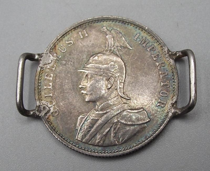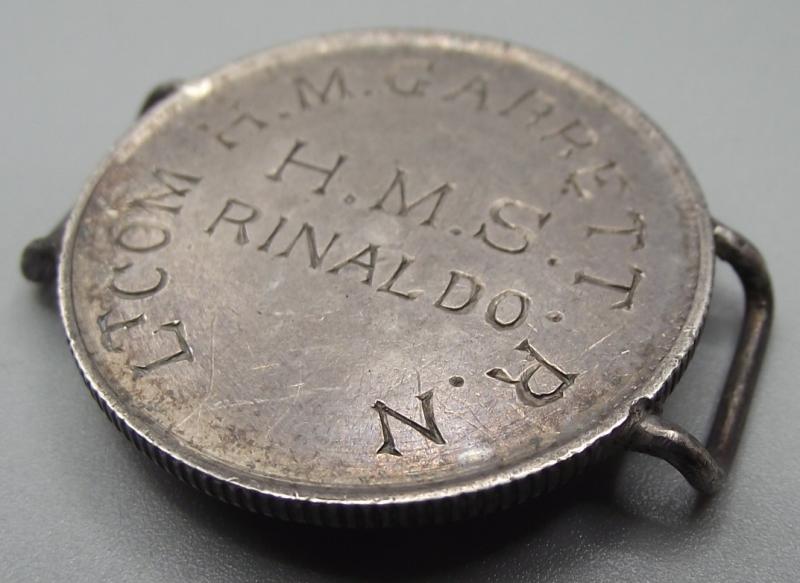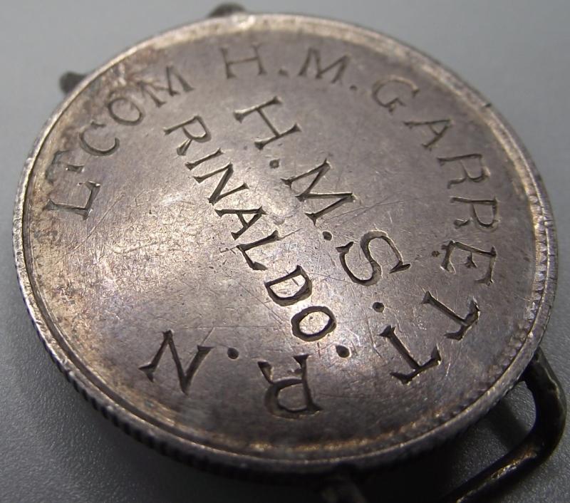 Made from an Imperial German silver coin with full details of the owner to the front. Garret has a long career serving in the Royal Navy up till 1927. He commanded HMS Rinaldo, a Condor class sloop, from 1914 till 1918, mainly in Africa.