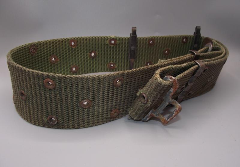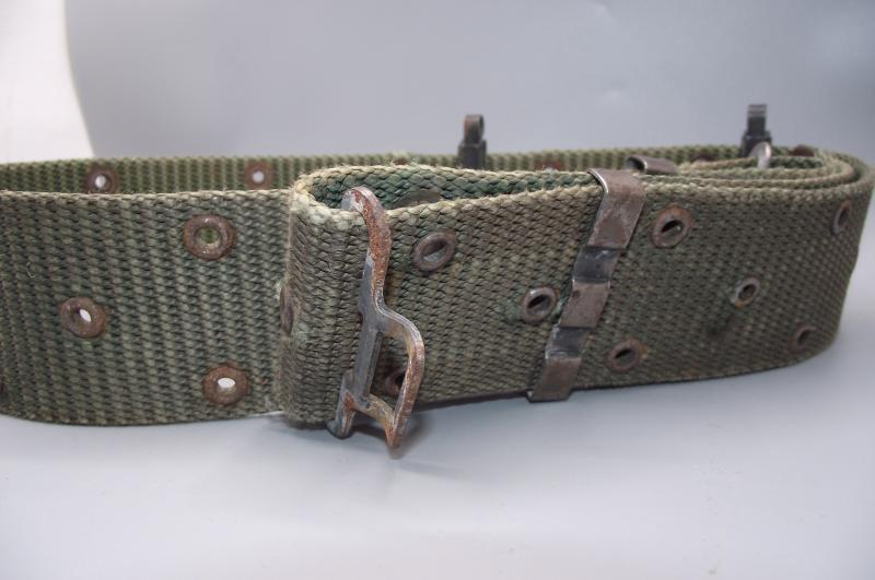 This example is well used and has been shortened by the owner. Belt still has two steel brackets for hanging other webbing off the belt. Perfect display with any First Gulf War Iraqi collection and came together with the unit marked Iraqi canteen ive just listed.