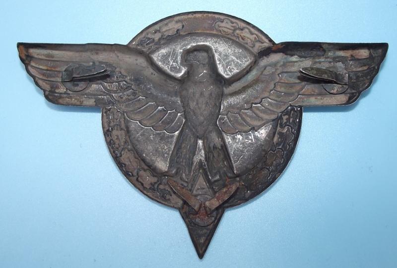A large metal HJ badge as found on one of the upgraded sports certificates. The finish is close to 100% complete with the rear having all its fixing prongs. The eagle measures around 4.5 inches from wing tip to wing tip.