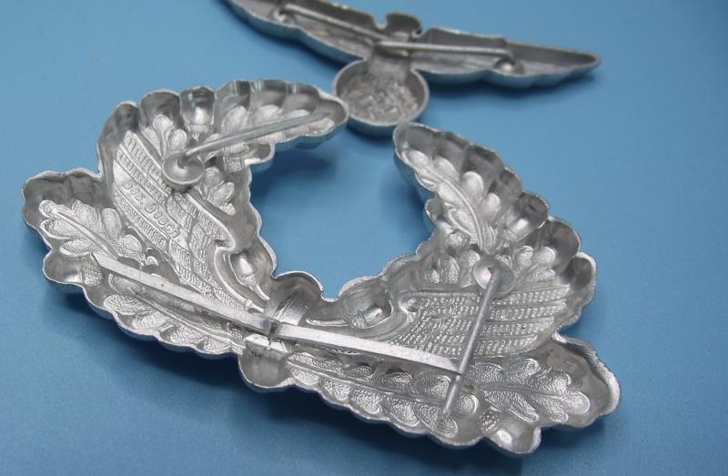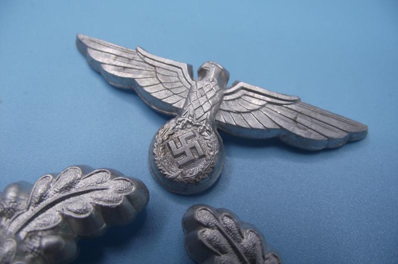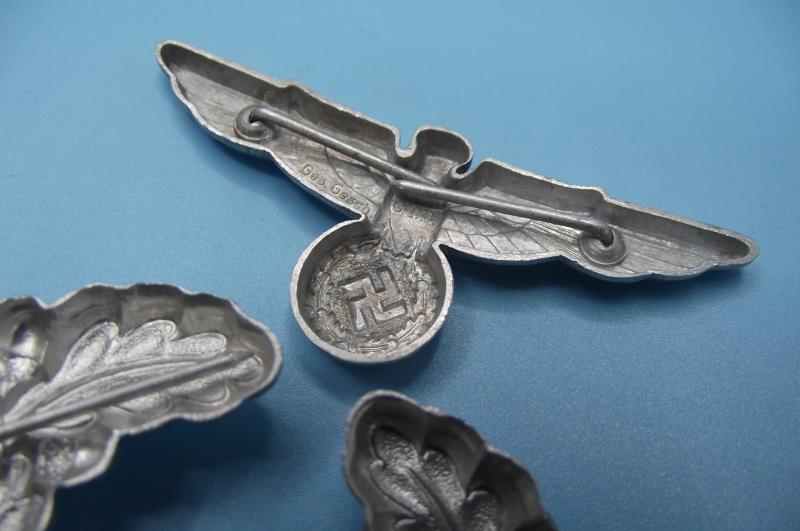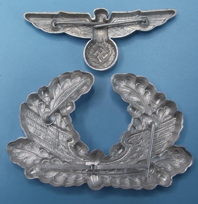 Both eagle and wreath are in very nice condition with all fixing prongs intact and both pieces having clear Ges Gesch stamps. All you need to complete the set is the central cockade.