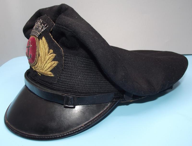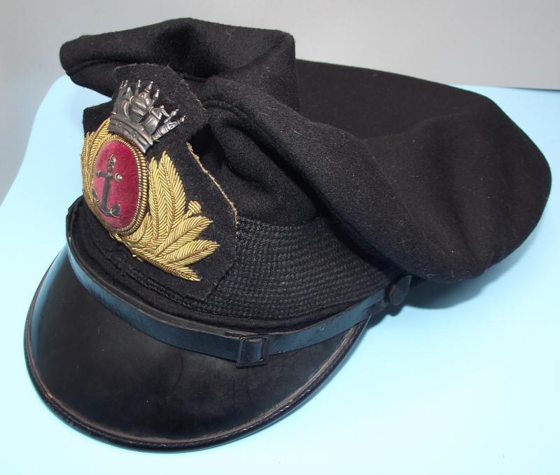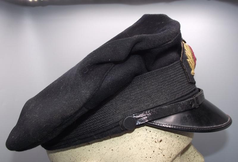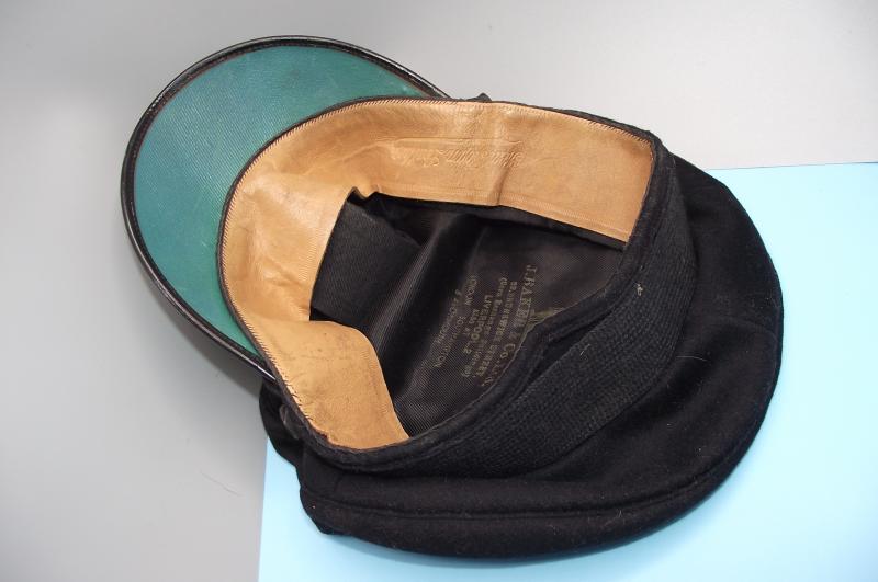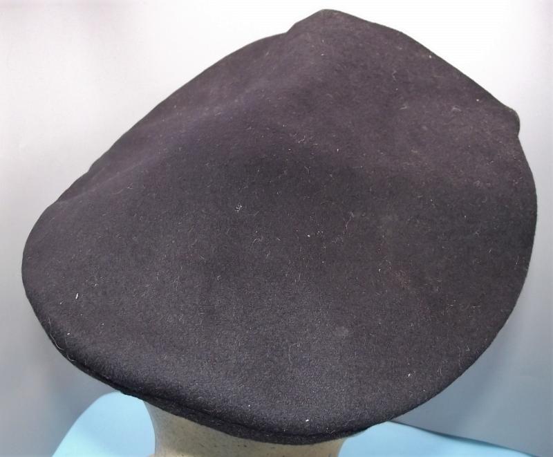 A very nice WW2 example with a great shape with the owner removing the top wire stiffener and cutting the front stiffer inside. The material has good nap without moth nips or tracking. The inside has a its leather sweatband with only one inch of loose stitching along the side above one side button. The inside has clear makers details. Perfect display with a great shape that i can only imagine a member of the Merch being able to get away with. As for size i would say small to medium.