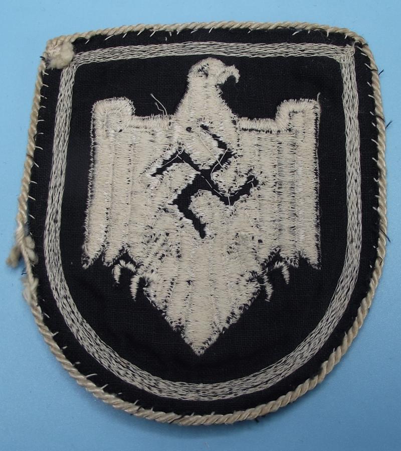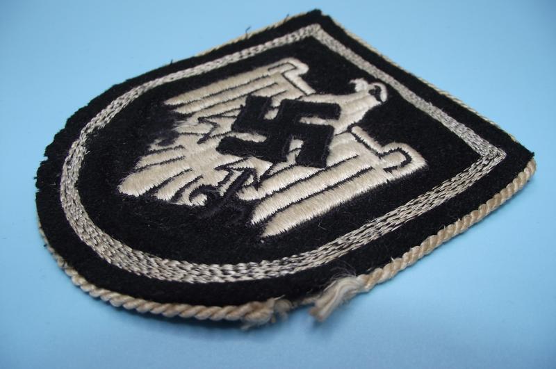 Large multi piece sports shirt insignia for use by members of the NSRL. Condition is very good with just some minor moth nips to the bottom left of the design and one break to the edge pipping.