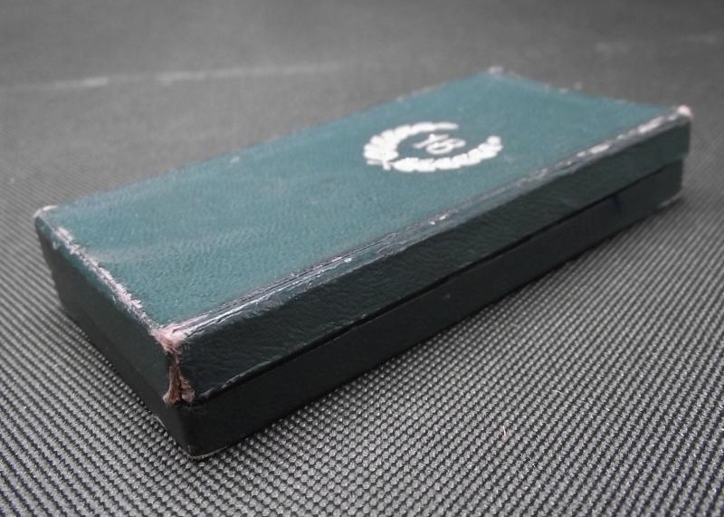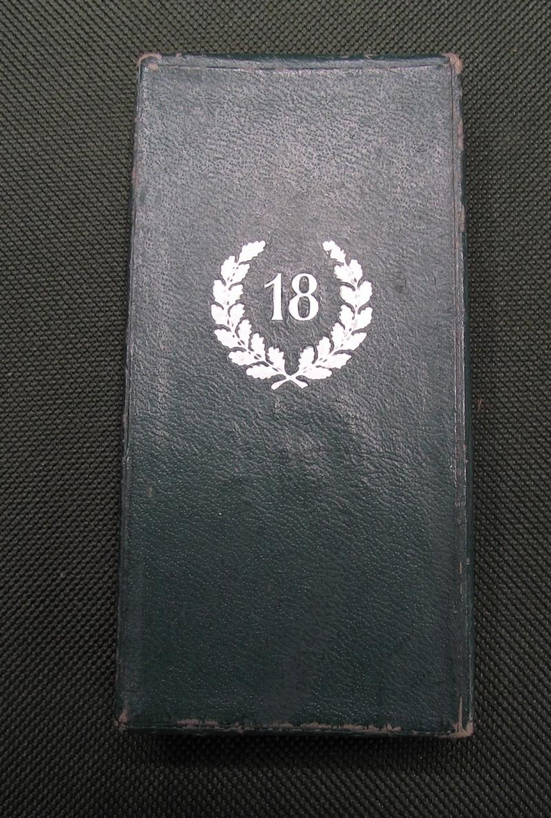 The medal has a very nice amount of its factory finish intact including the burnishing, small amount of patination to be found. The top embroidered ribbon is clean and would appear to be untouched. The box has a certain amount of wear but is solid with bright color and clear ''18'' to the center to the outside. Inside again in good complete condition with a couple of stains from storage.