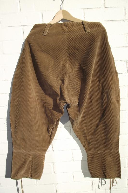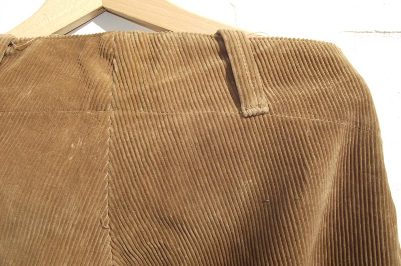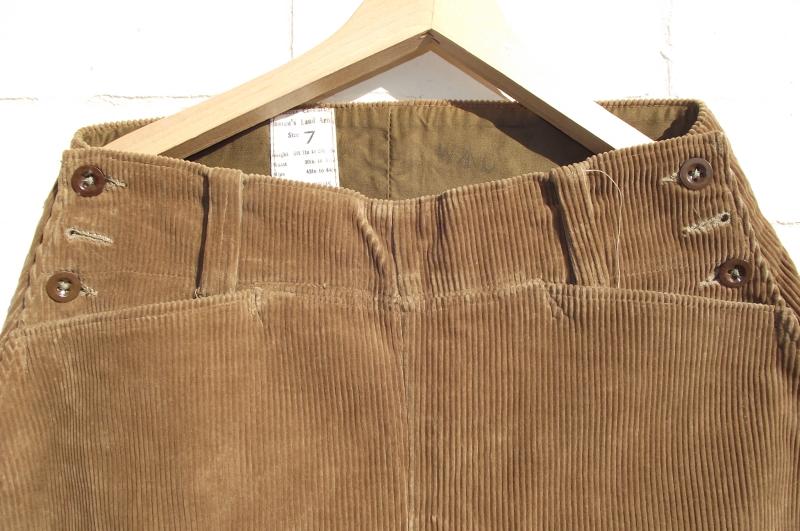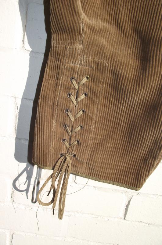 A nice condition pair with clean corduroy material, complete buttons, bottom leg laces and a clean inside label including a faint ''WD'' broad arrow stamp to the side.