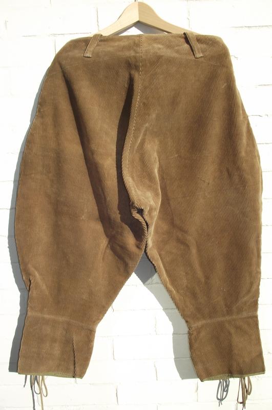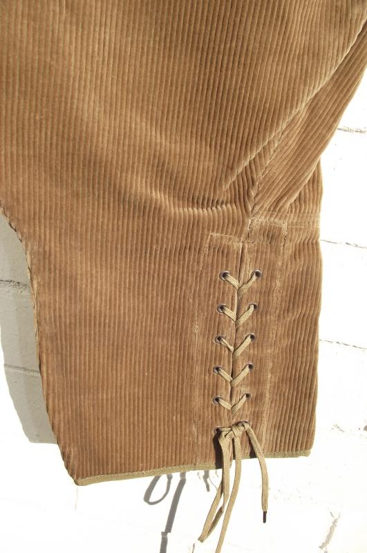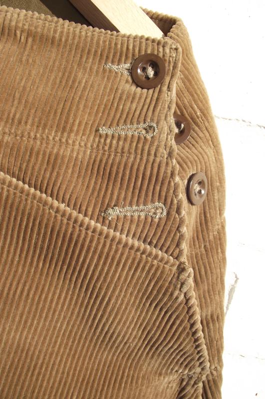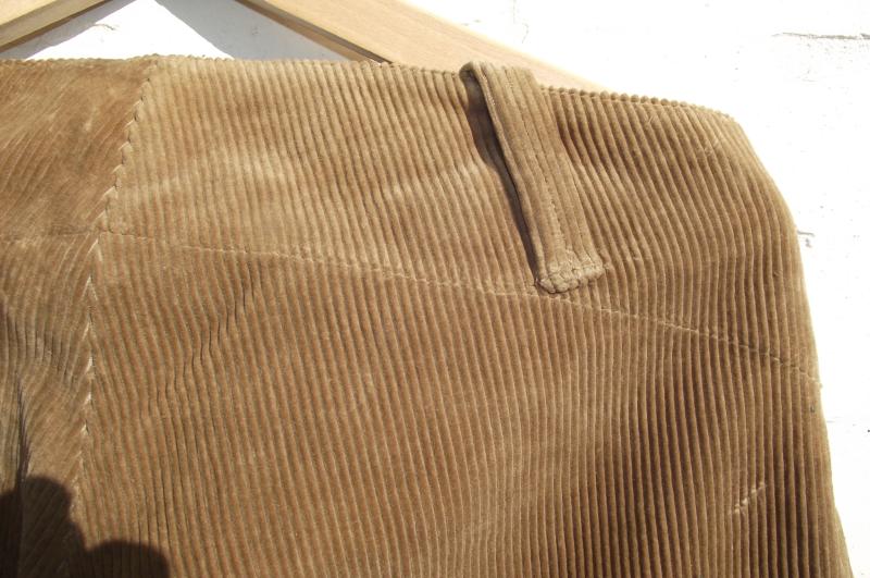Very nice condition example with clean corduroy, complete side buttons, bottom leg ties and a clean inside label with a faint ''WD'' broad arrow stamp.