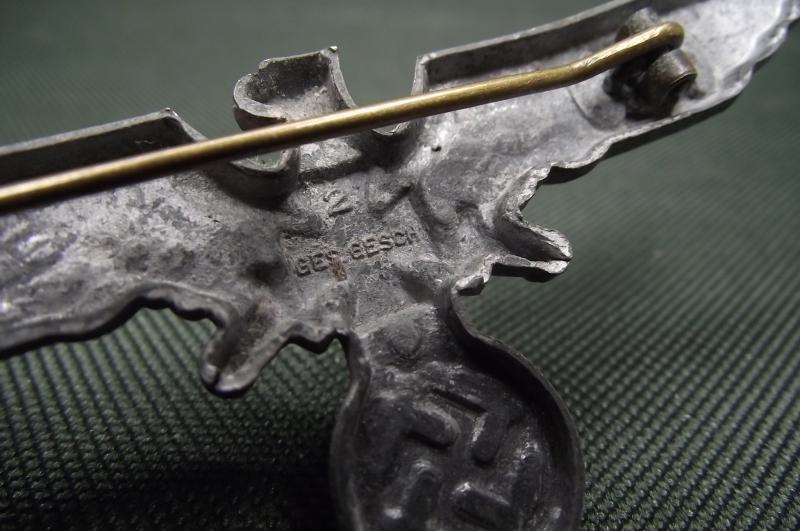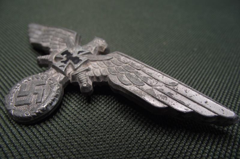Injection molded aluminium eagle with some finish remaining, details is strong. The rear has its period hardware and clear markings.
