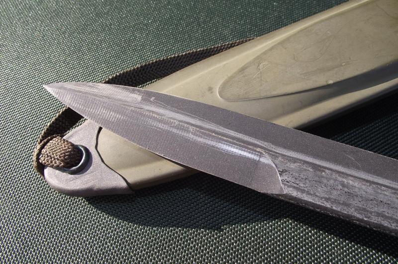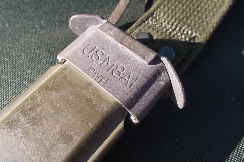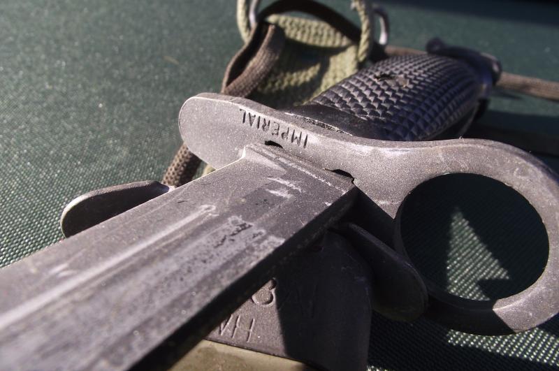 The bayonet is in what i would call close to mint condition with all metal, blade and fittings, having close to 100% of its mat parkerized finish, some marks to the blade from the scabbard runners. Scabbard again in mint condition with its tie lace. Inside the bag can be found a factory label with details including a 73 date. The box has been opened along the top tape and includes the silver paper wrap, box has full details including a side label stating M7 bayonet.