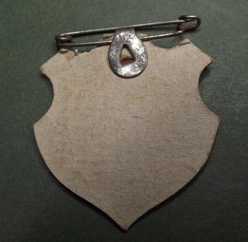 Ok! Here i go again.... just check out this super early cardboard event badge, as an ex tinnie collector its just wonderful! Anyway back to the badge itself... its in very nice condition considering its age and being produced in cardboard, just a couple of minor knocks to the top edge, color is still strong and bright and this event badge still retains its period hanging pin!