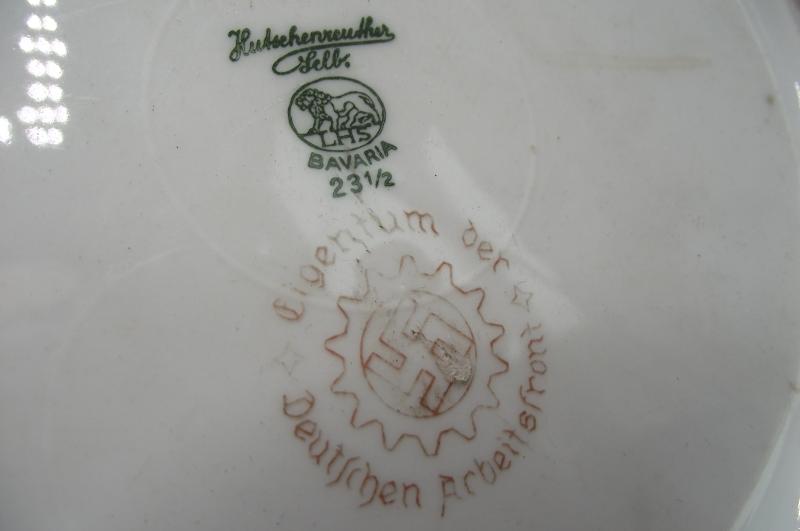 Plate measures just over 9 inches across, its in nice condition with no chips or cracks, some staining to the overall design. Clear maker and DAF markings to the underneath.