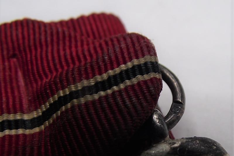 In good condition with over 75% of its period finish intact and a good length of period ribbon. Clear makers stamp 18 to the ring for the Wurster factory.