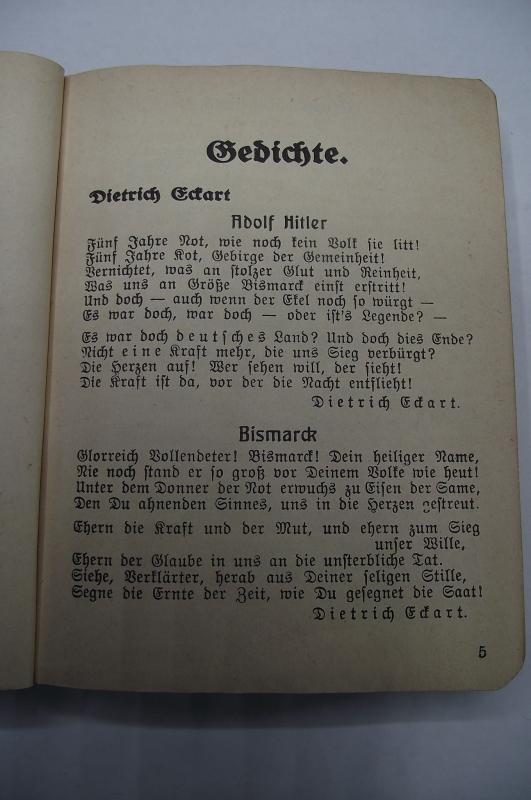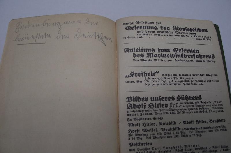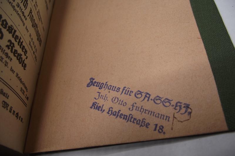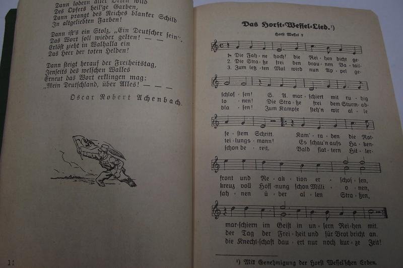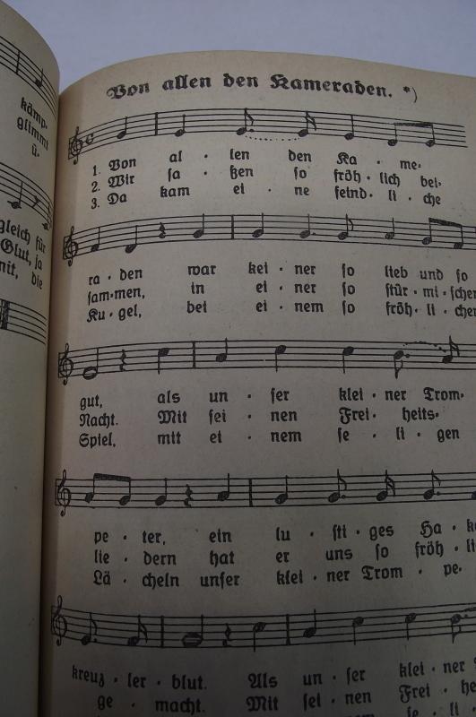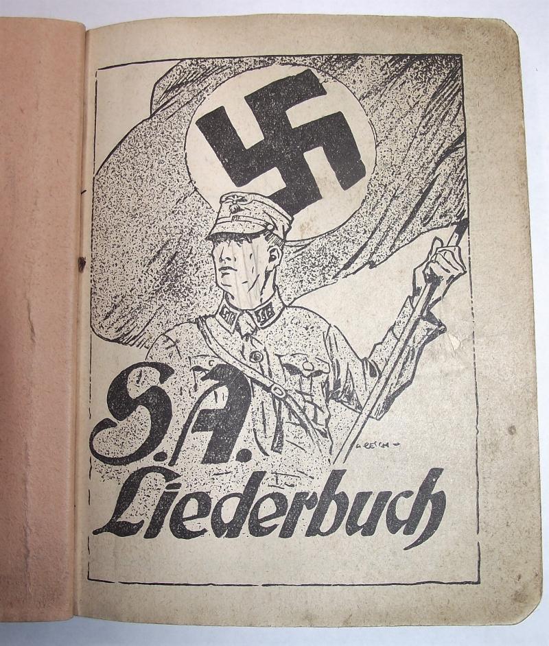 Nice early clean hardback song book to the SA. All pages present, couple of pencil marks to the face of the SA member to the front of the book, some hand written details to the rear with a distribution stamp to the inside rear cover.