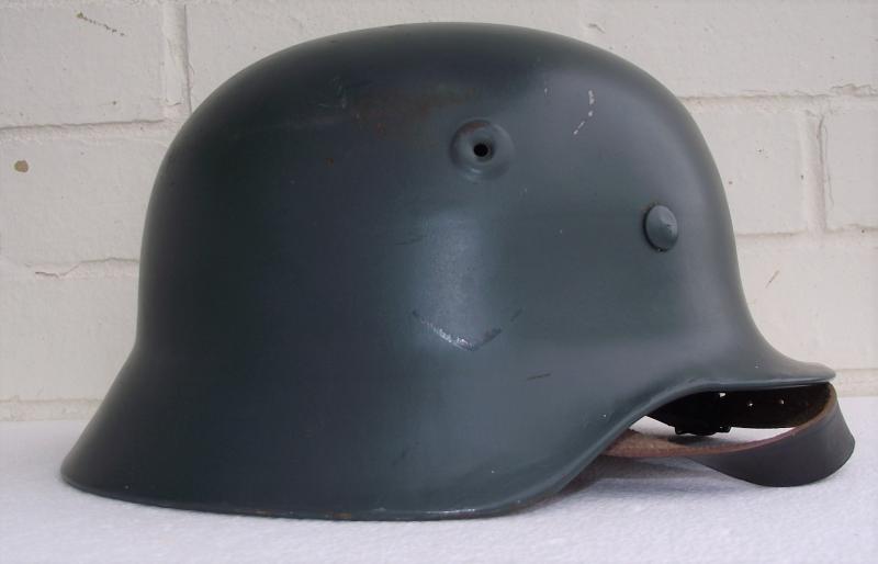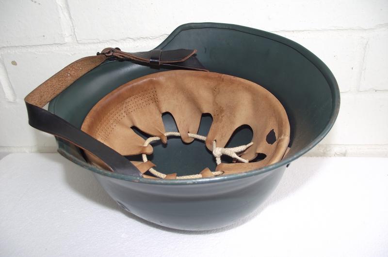 In very nice condition with close to 100% of its period finish, at some point it looks as if repro decals where added then removed. Liner pins are tight. The inside liner and chinstrap system is complete , supple and in very nice condition.
