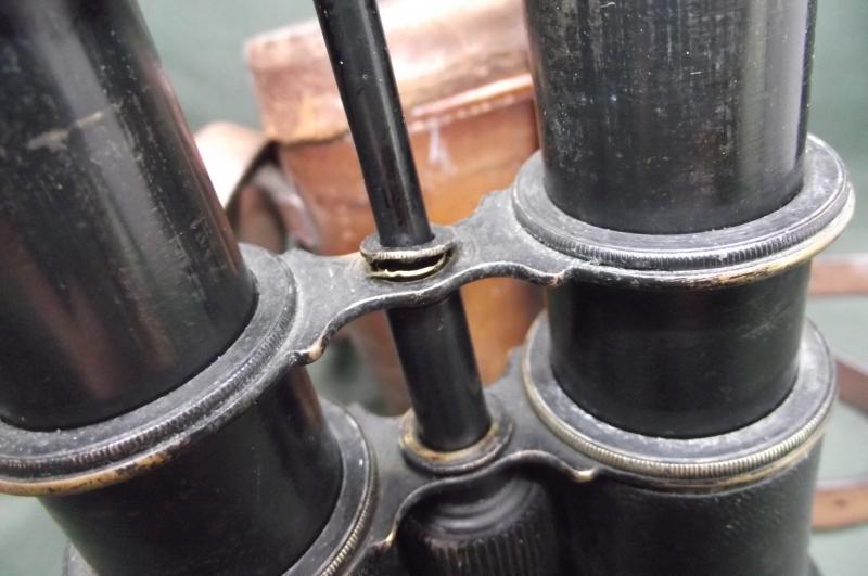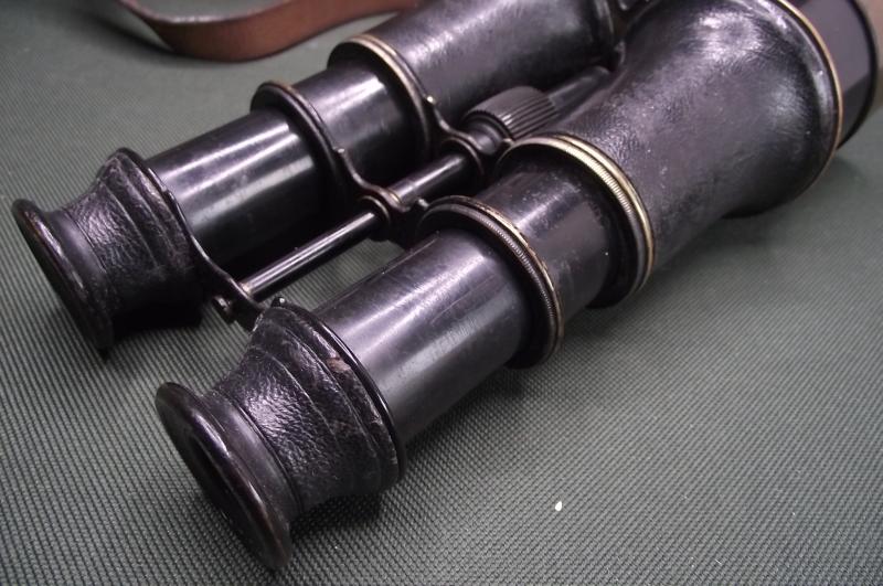 A very nice early pair of Binoculars with a'' two draw'' system that i have not seen before. As for condition, the body has its very nice complete leather cover including the cover to the top lens ends, one dent from a slight knock. Both sun screens have some of its period black finish. Both lens cap ends are maker marked to Harris and Son. There is a problem to the thread when trying to focus the optics, one washer has deteriorated to the bottom draw so i need to pull on the top lenses whilst moving the middle screw to raise and lower. The optics do focus and are clear optically and other than the said problem are a nice displayable set which date to around the 1850's. The period leather case is complete with strap and a very nice paper makers label to the inside top. Thomas Harris had moved address from his shop in front of the British Museum around 1850 so this set would make a nice display with any Zulu War or Boer War collection. Im going to sell these cheap as i would like them to go to someone who would spend time in restoring such an unusual early set or use them for display as it would be a shame for them to end up in a skip!