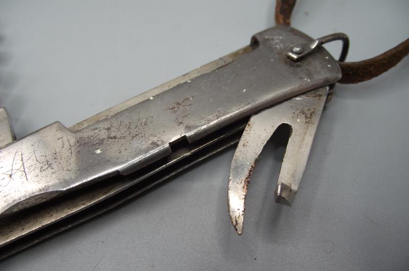 Sweet pocket knife that was brought home and named to both sides by a Captain A.G.Phillips, he definitely didnt want to lose his new knife find! The condition is very good with minor staining to the metal only. Nicely marked in a couple of places ''Mercator'', DRGM and Solingen for area of manufacture. Nice addition is the little wrist lanyard added by Phillips. I purchased this a number of years ago from a friend who does local house clearance in the Cardiff area and added it to my collection, time has come for a new owner to enjoy this example. Sorry but no other info on Phillips.