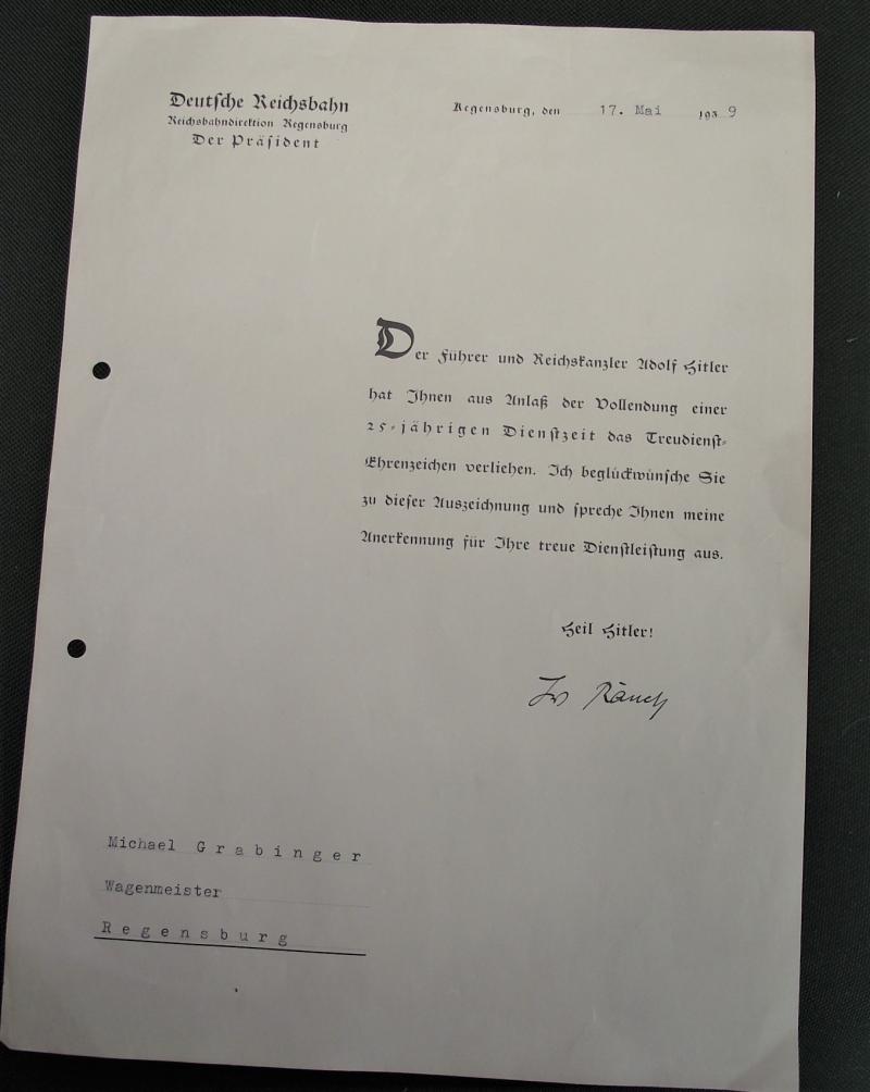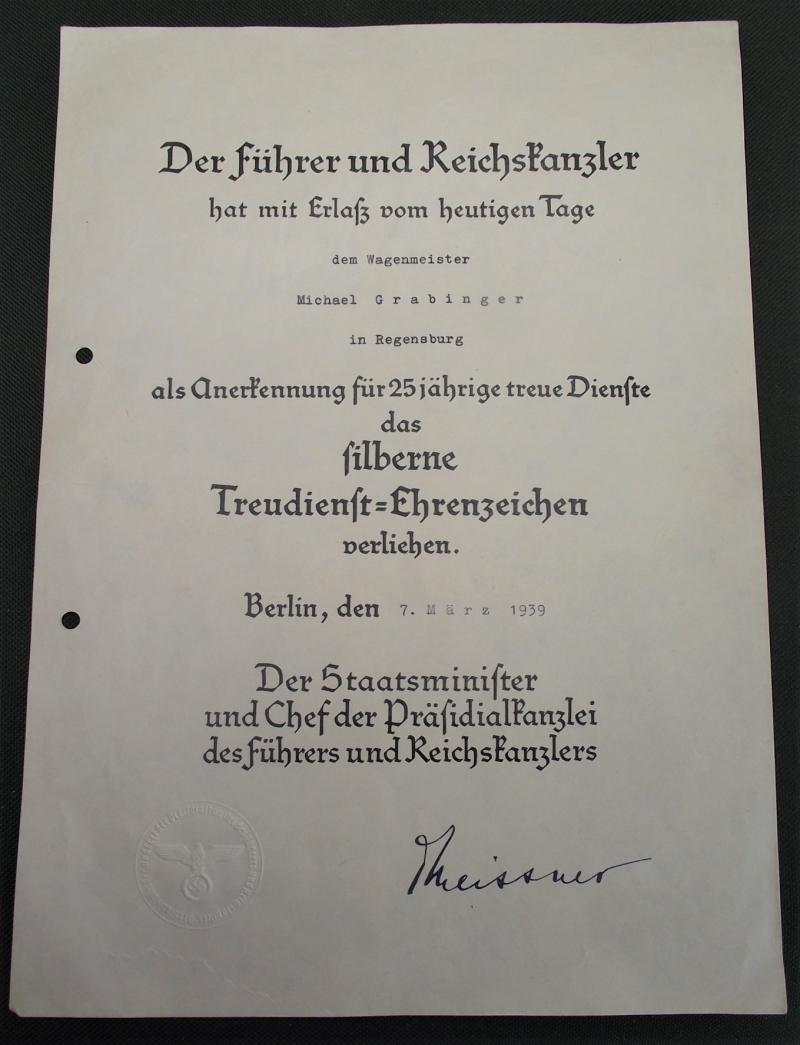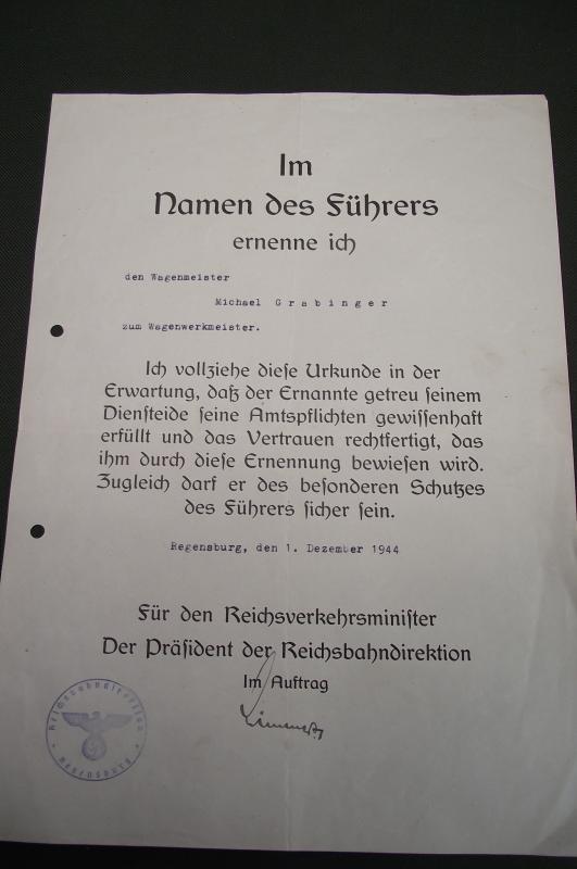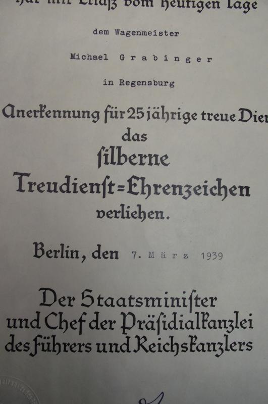 Reichsbahn 25 Year Faithfull Service Document and others.