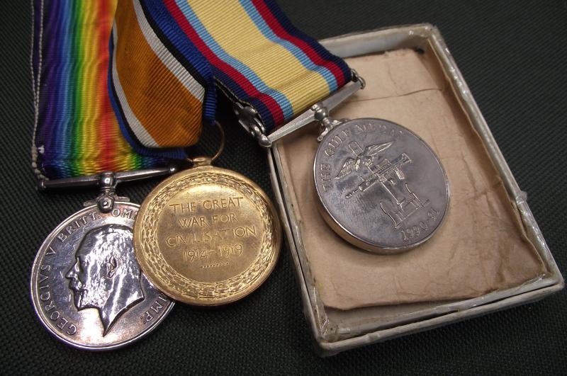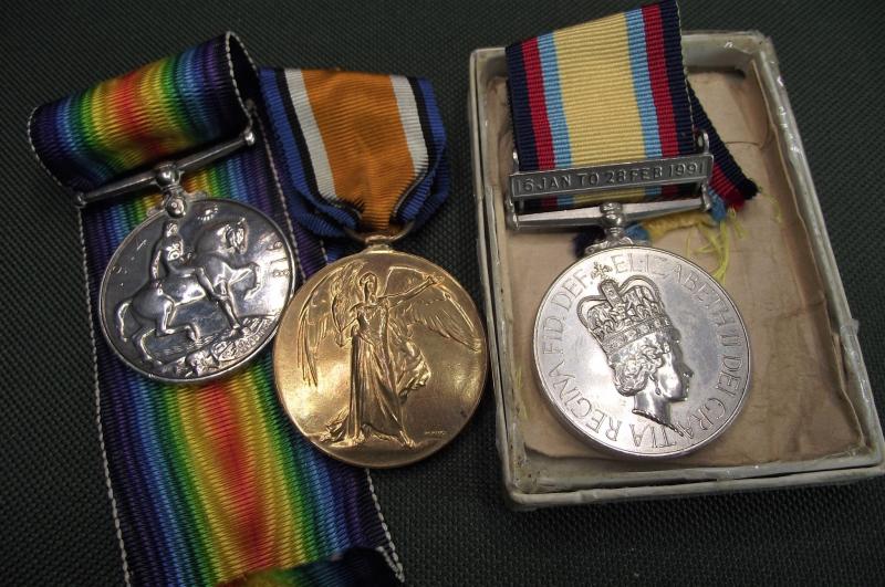 Family Medals. Gulf War and WW1 Pair. Cardiff.