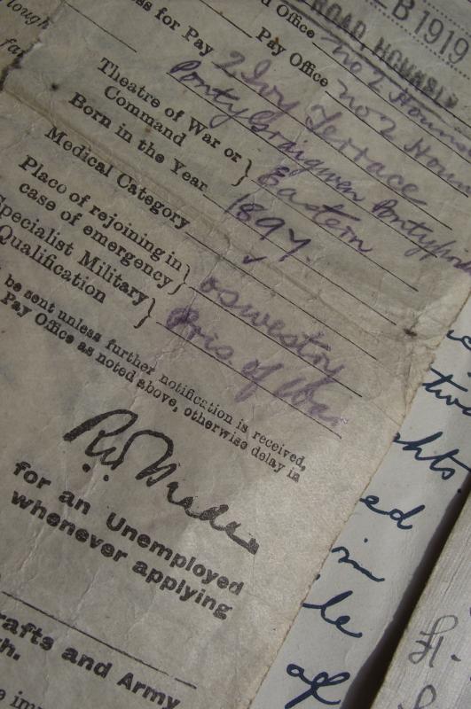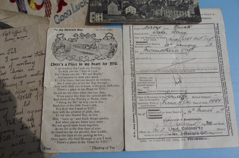 WW1 British POW Document Grouping. Monmouthshire Regiment. Pontypridd.