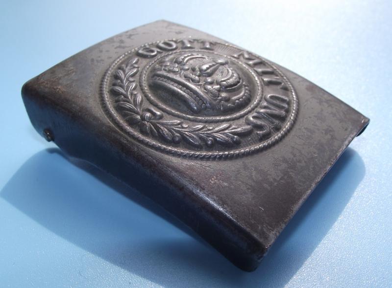 Late war painted example with close to 80% of its green factory paint remaining to the front and nearly 100% to the rear. Both fixing prongs and catch intact.