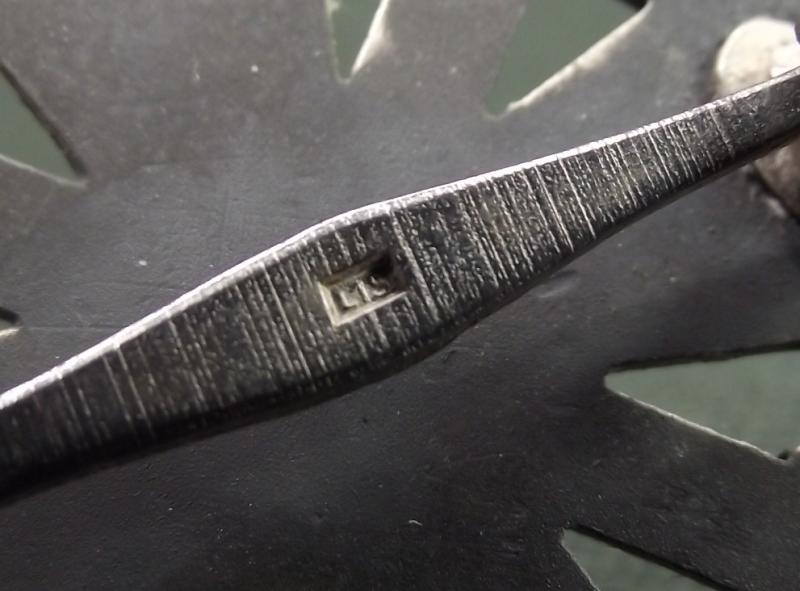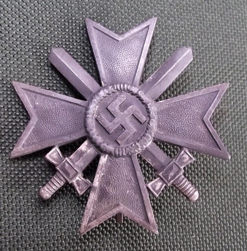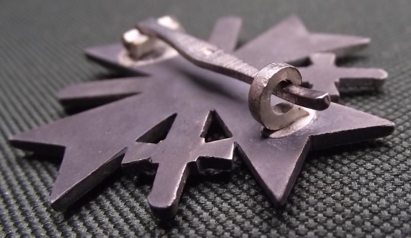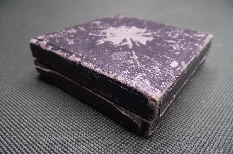 Zinc manufactured cross by the firm Orth, clear L15 stamp to the fixing pin. Cross has lost most of its silver finish, still retains sharp detail. The box is its period example and is in nice condition.