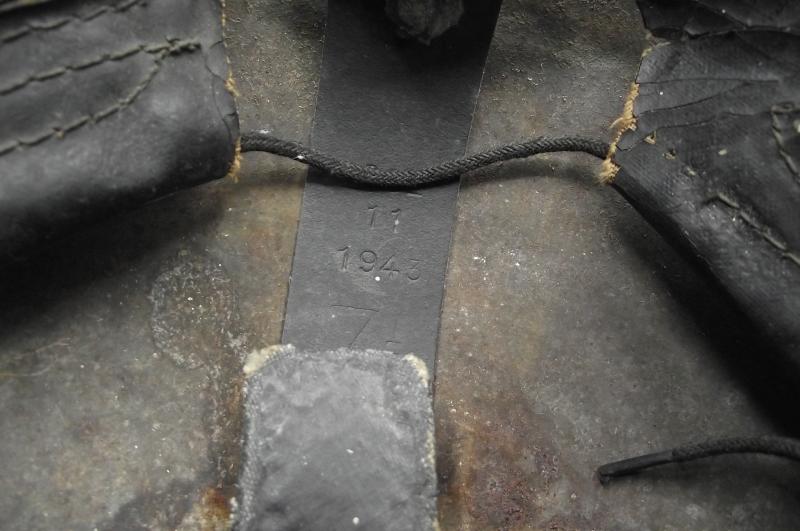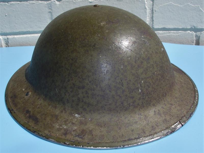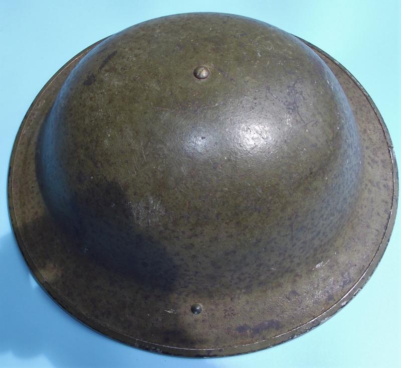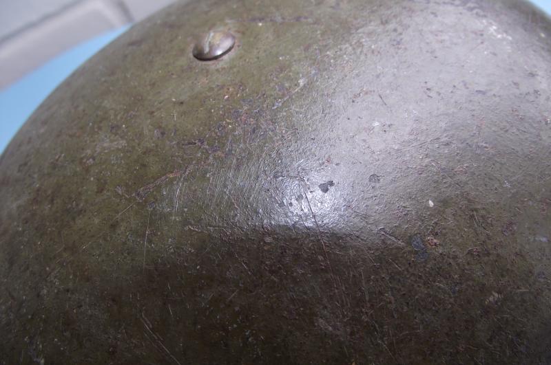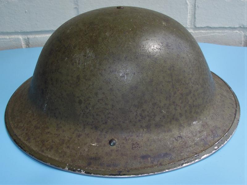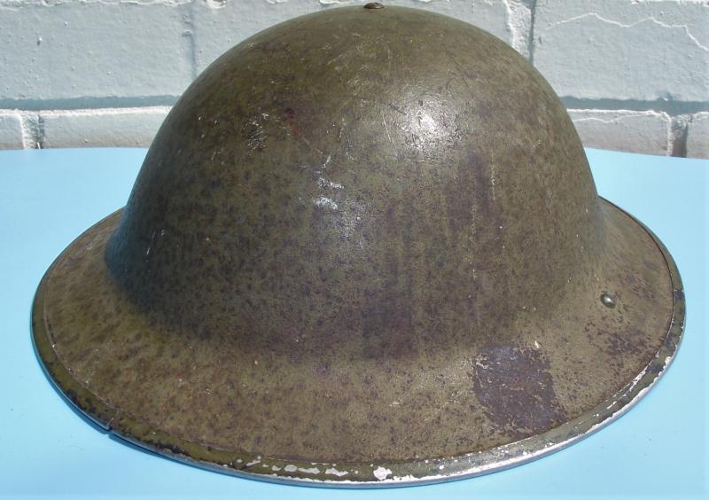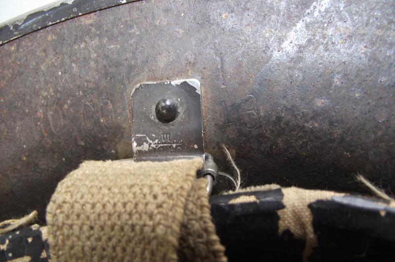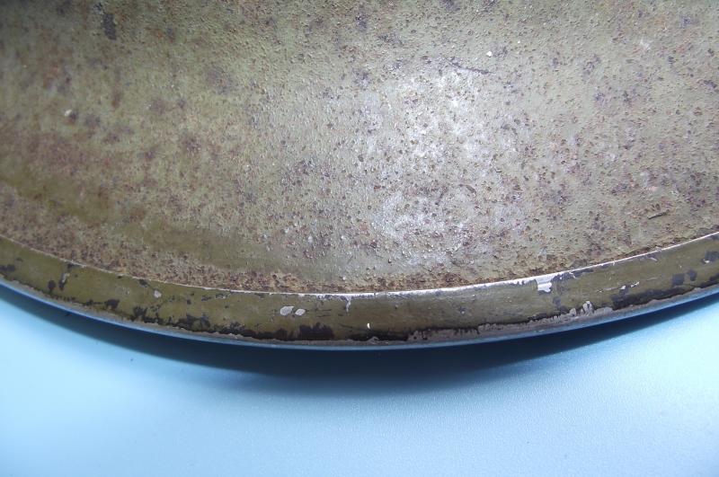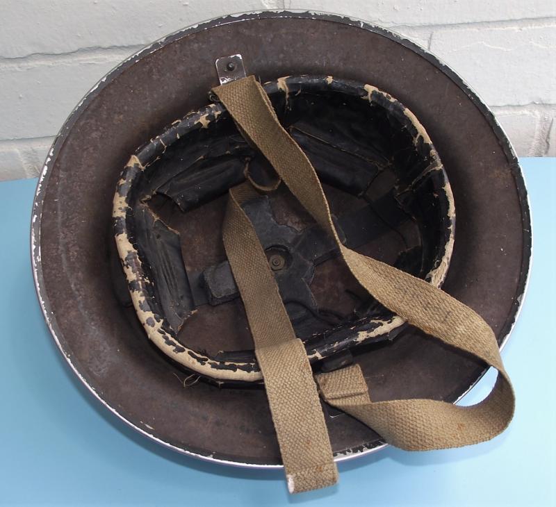 The shell retains close to 95% of its period army green finish with a certain amount of dark patina. The inside 1943 dated liner has seen plenty of use, its complete with a clear makers mark and date. This helmet is interesting as it began life with a complete coat of black finish so factory manufactured as a home front rescue helmet. Its my opinion that it never left the factory but was reissued at source with an addition of the Army green paint with fine ''grit'' to the outer shell as the green paint is not hand painted but a professional factory spray. The shell as the liner is dated 43 with both chinstrap bales dated 1942. An interesting example as i do find lots of black home front helmets that where once early army helmets but not the other way round. The 1943 date would suggest a time when orders for Army helmets overtook home front needs at factory level.