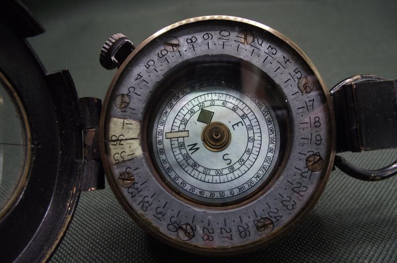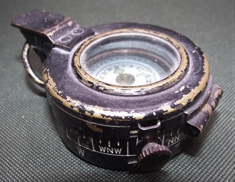 A very nice example with most of its period black finish still remaining to the brass body. Dial is free moving with clear details. The rear is clearly stamped with a 1942 date , broad arrow stamp, stores serial numbers and a faint makers mark. I must add that ive just found the smallest of air bubble that usually keeps under the dial, i am talking small folks!
